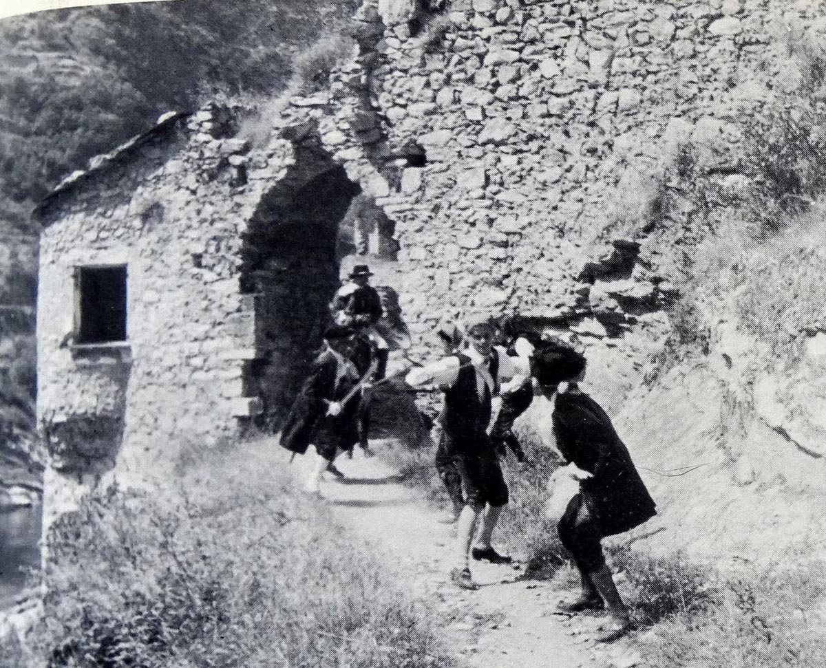 Un château dominait le village sur un replat de l’arête rocheuse, juste au dessus des maisons du village.