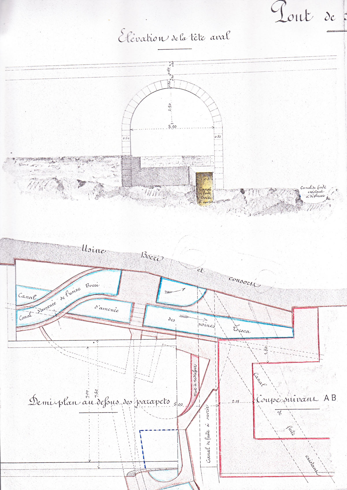 La mise en place de ces canaux a nécessité localement le franchissement de parois verticales plus ou moins hautes, éprouvant l’ingéniosité des maçons descendus à bout de cordes ou montés sur des échafaudages pour créer les voutes et murets soutenant les formes de goulottes le long des falaises plus ou moins hautes.